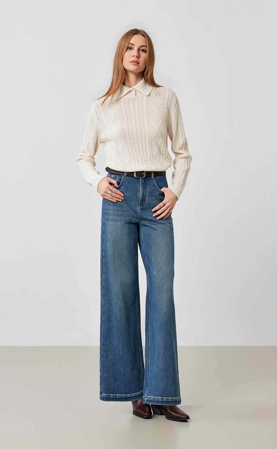 Cable Polo Neck Sweater