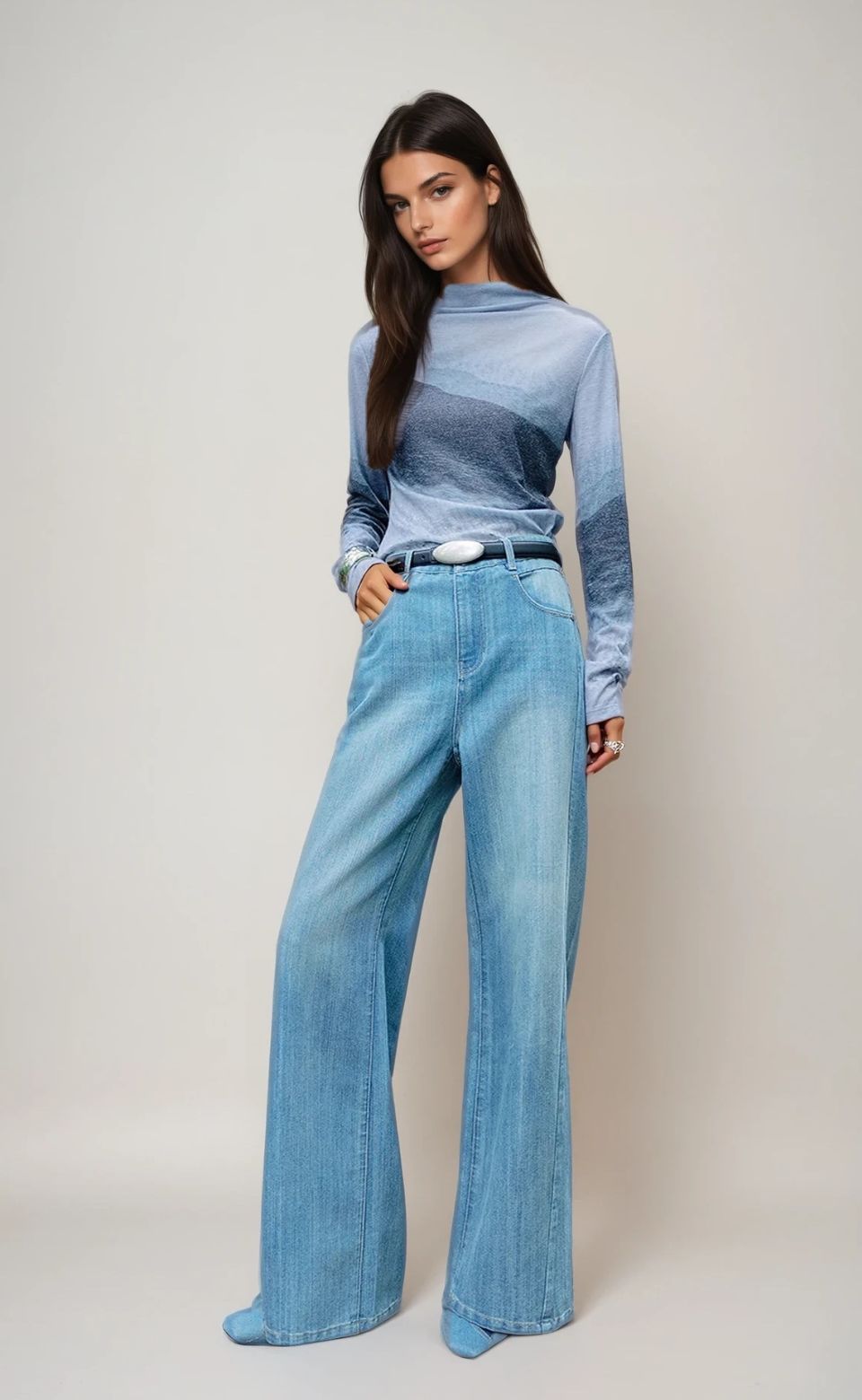 A modern take on vintage-inspired denim, these high-rise jeans feature a soft stone-washed finish and a fluid wide-leg silhouette. Designed to elongate the frame, the structured waistband and relaxed drape create effortless movement with everyday ease. A timeless staple with a contemporary edge.